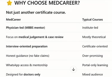 Through MedCareer, my mission is to guide doctors step-by-step into non-clinical careers with clarity and confidence.